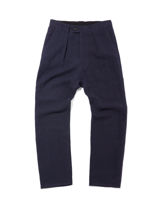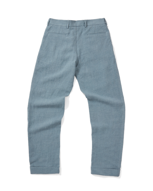 A selection of legwear in a range of extraordinary natural fabrics, with the sort of handles that are rare in the world of fashion today. Harking back to a different era of substantial linens and historic, military fabrics that combine elegance and durability.