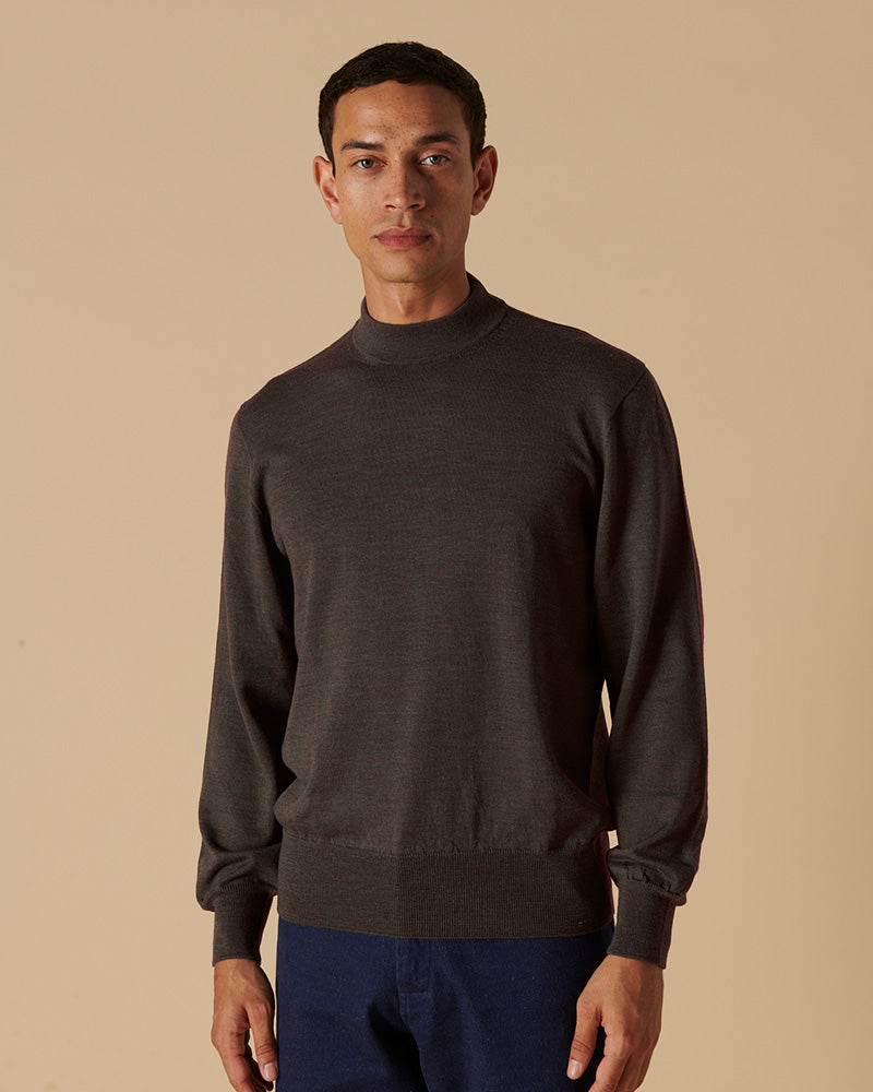 Our High Neck Crews are designed to add a little je ne sais quoi to your autumn outfits. With a collar that’s halfway between a crewneck and a polo neck, it can play many roles, worn as a light jumper in its own right or under another shirt for a considered layering look. Thanks to the extended ribbing on its hem, it looks great tucked or untucked.