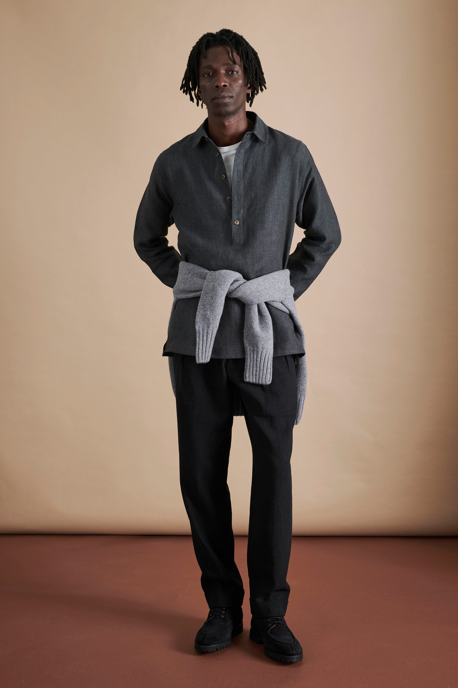 Heavy Grandpa Shirt, Charcoal Yarn Dye.