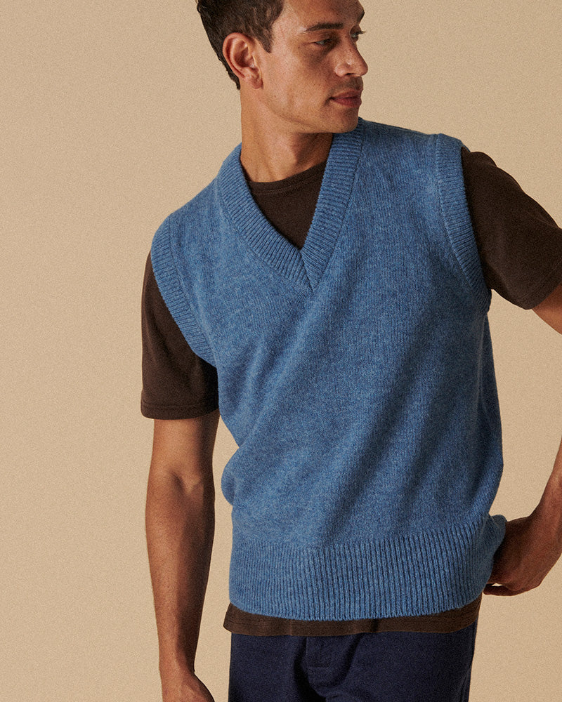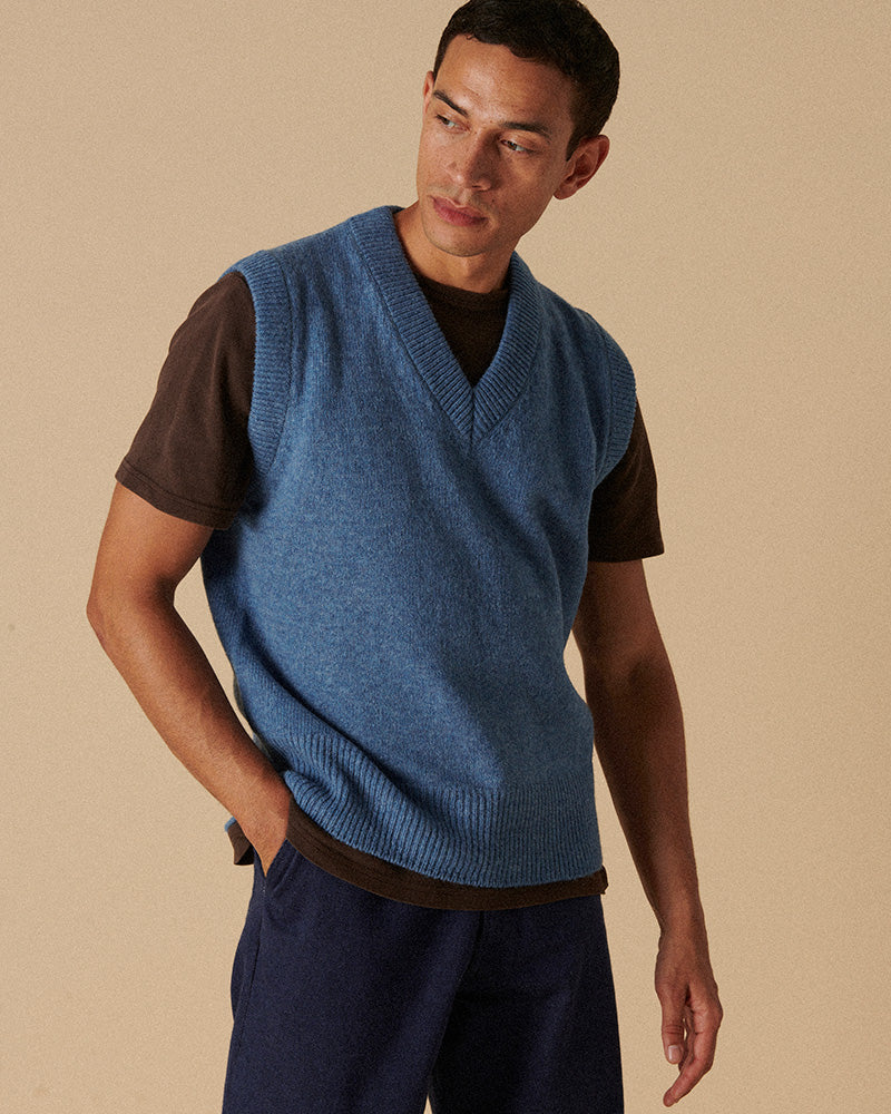 Our interpretation of the classic sleeveless V-Neck has an easy-wearing fit. We've used a partially brushed 100% wool with a melange weave the combines different colour yarns for a real depth of texture and colour.